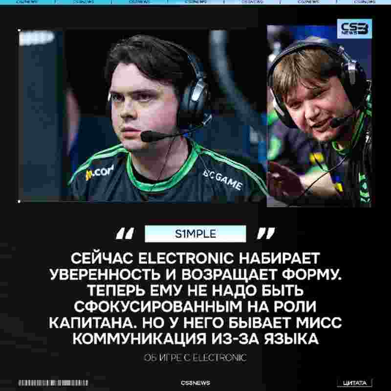 BC.Game明星狙击手s1mple对自己和electroNic的状态发表了看法,并对能继续打比赛感到高兴。