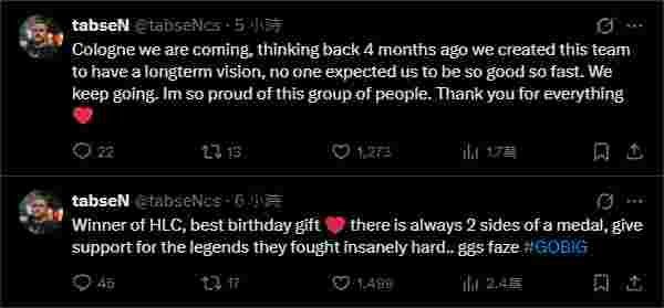 赢下HLC,就是最好的生日礼物。奖牌永远有两面,也请给那些传奇选手一些支持——他们真的拼尽了全力。GGs,FaZe。