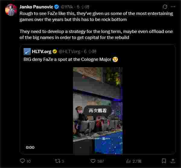 在HLC贝尔格莱德决赛中不敌BIG后,FaZe正式确认无缘科隆Major。赛后,BIG队员的喜悦与FaZe队员的消沉形成鲜明对比,众多业内人士亦纷纷发声,剖析这支昔日豪门所面临的深重危机。