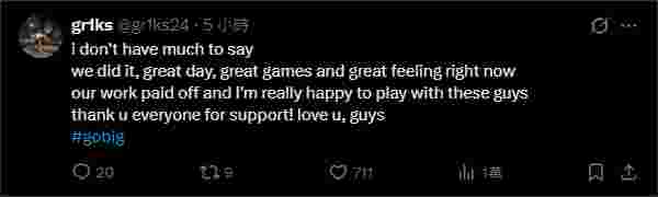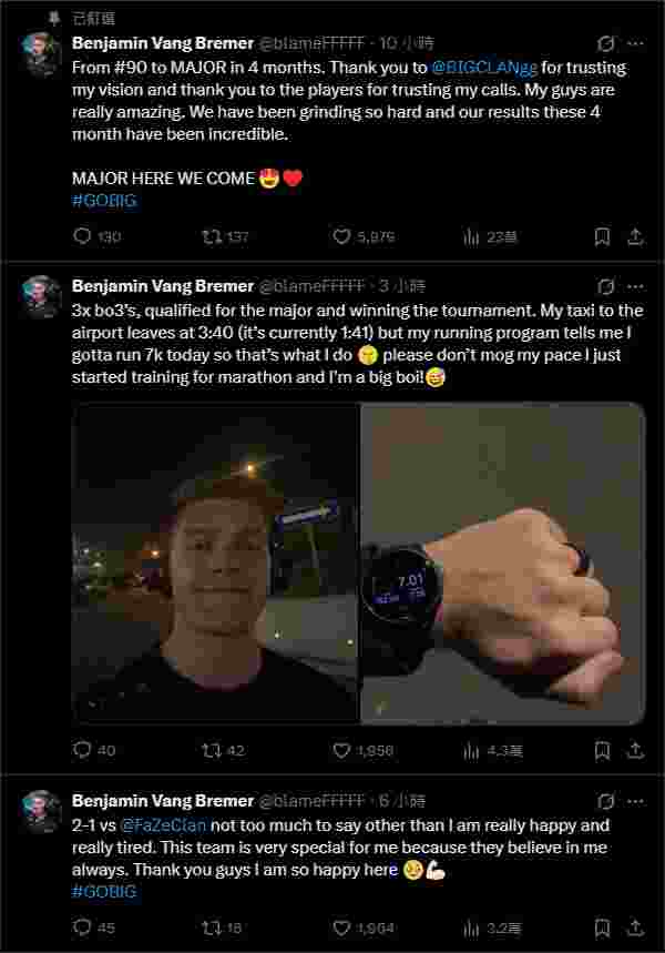 四个月,从世界第90名打进Major。感谢队伍信任我的战术构想,也感谢队员们愿意相信我的指挥。我的兄弟们真的太棒了。这四个月我们拼得非常狠,所取得的成绩堪称不可思议。Major,我们来了。