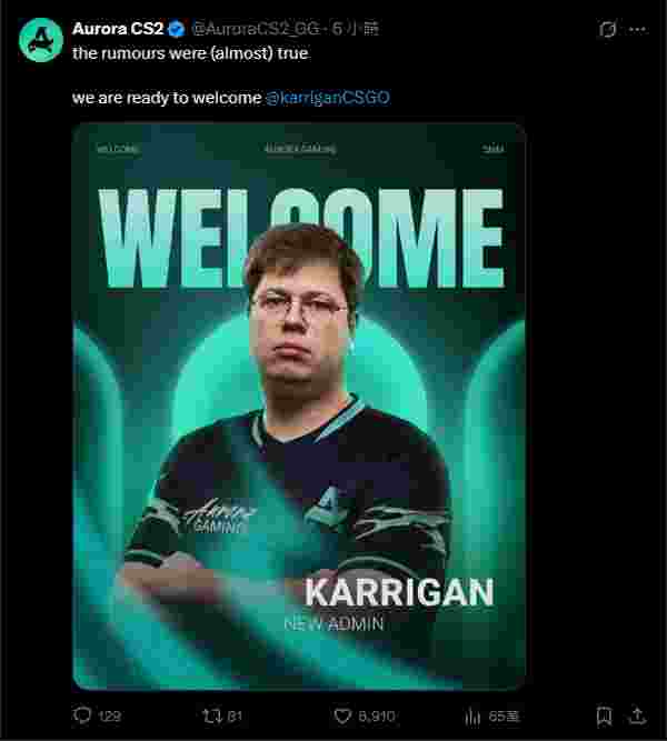 我们已准备好迎接karrigan。你们一直在等待消息。现在终于等到了。现在只剩下老将们在征战了。Finn Andersen(karrigan),这位传奇选手兼队长,将在Aurora Gaming担任新的社交媒体经理。预祝他在这条道路上一切顺利,并能收获粉丝们的积极反馈。