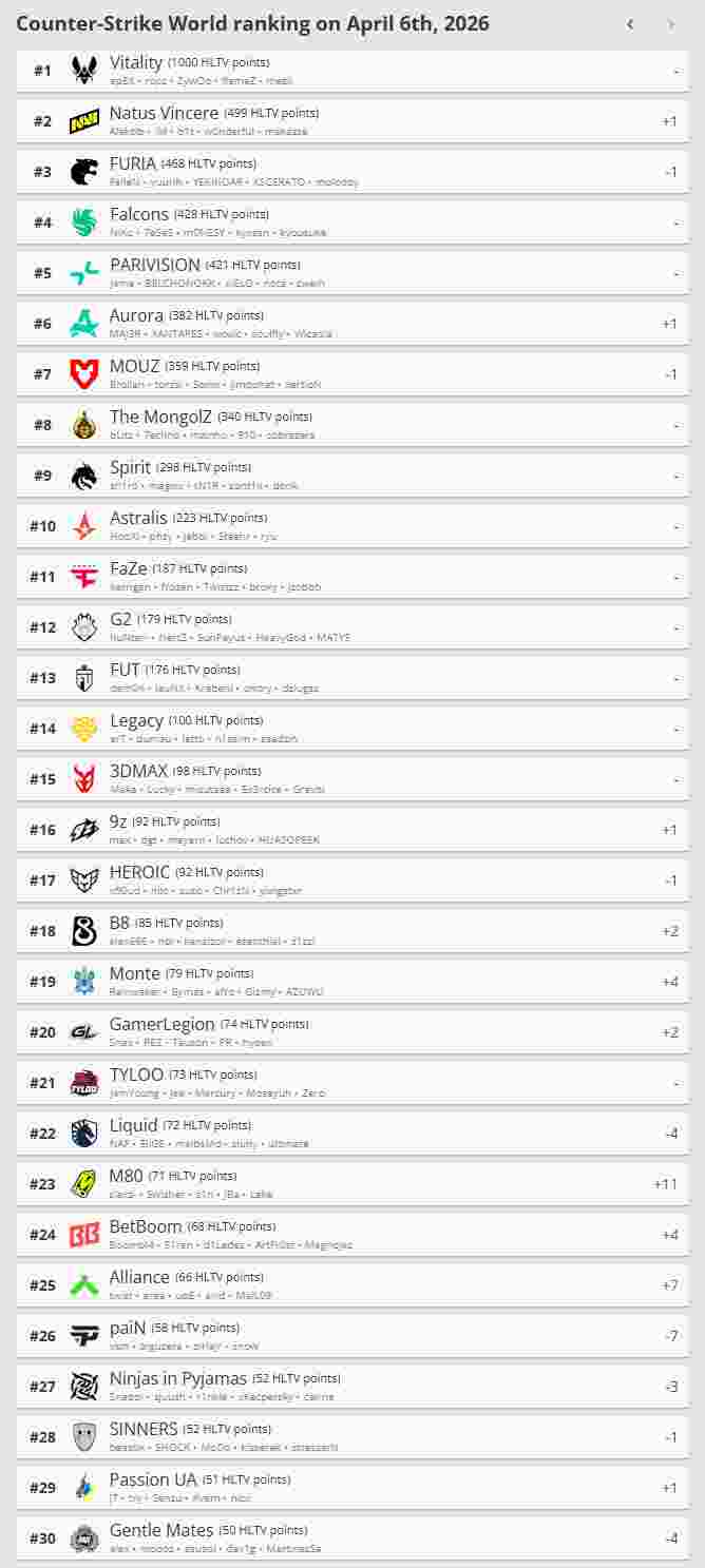一起看看最新一期HLTV世界排名吧。