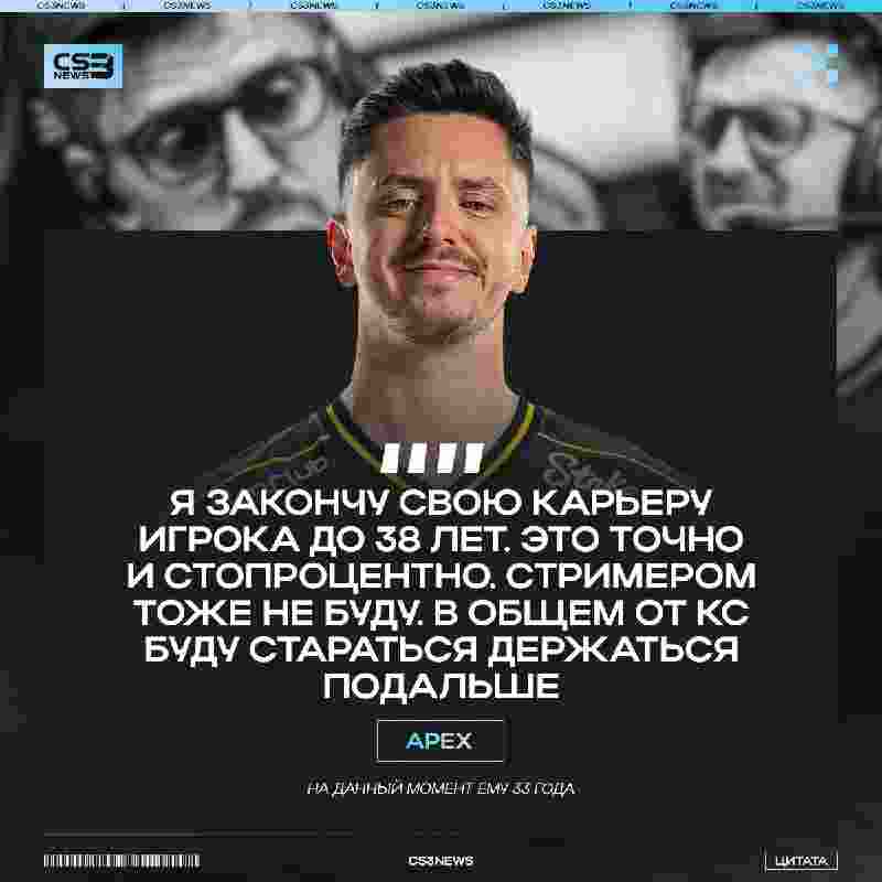 apEX的职业生涯始于2009年,当时他大约15岁。期间他共拿下四座CS:GO与CS2 Major冠军。如今他33岁,早已开始考虑退役问题,他也曾表示不确定自己会不会当教练。