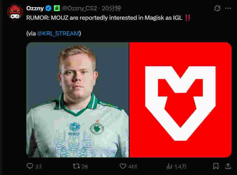 MOUZ已锁定Magisk作为新任队长的目标人选。不过KRL提供的信息相当有限,例如并未提及双方谈判进展到何种程度,也未说明这是否意味着Brollan将被下放。