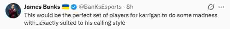 BanKs:“这组选手对于karrigan来说,简直是最适合他发挥疯狂战术的完美阵容……完全契合他的指挥风格。”