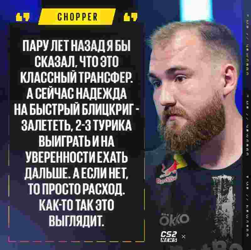chopper:“几年前我会说这是一笔不错的转会。但现在,希望能打出闪击战——先赢下2-3个赛事,然后带着信心继续前进。如果不行,那就只是白白烧钱。大概就是这样。”