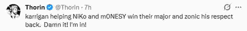 Thorin:“karrigan帮助NiKo和m0NESY拿到他们的首个Major冠军,并帮助zonic重新赢回尊重。该死!我入股了!”