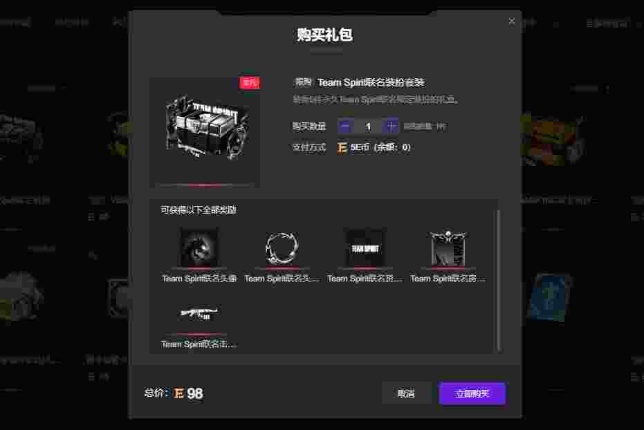 Team Spirit联名装扮现已正式上线5E对战平台!
