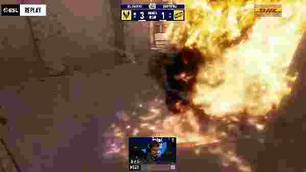 下半场Vitality做进攻方,手枪局五人二楼直冲B包,混战后ZywOo拿下四杀。