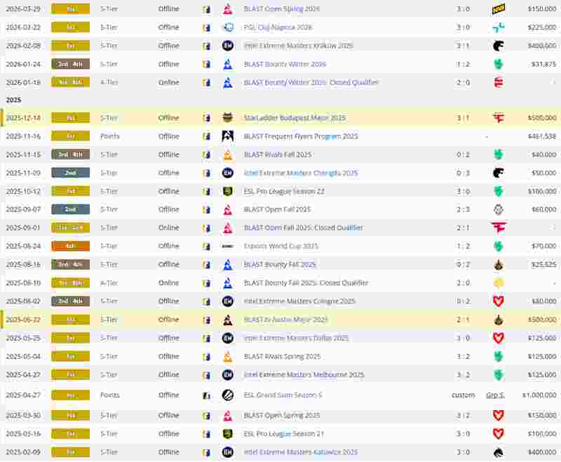 由apEX领衔的这支战队,自2025年1月起从未缺席任何一场半决赛。当时他们在BLAST赏金赛S1 2025淘汰赛中不敌