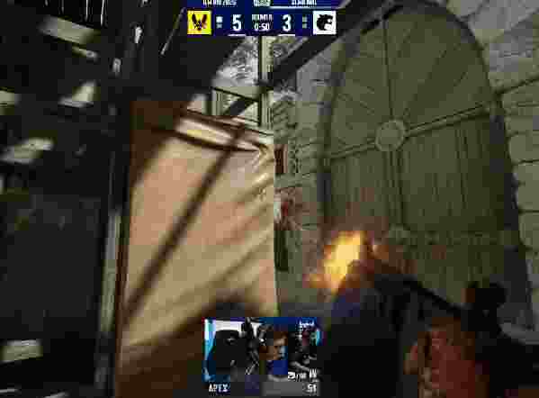 第十回合,Vitality第二时间反推黑屋,击杀掉一人后随后的土匪迅速从甜甜圈转a,但是着急的Vitality队员,在追击土匪的时候没有完成搜点,被跳台下的YEKINDAR抓到两个侧身,导致a区图权尽失,比分追平5-5。第十二回合,Vitality选择第一时间控制中路,flameZ枪法爆发拿下三杀!随后a区联动的两名土匪绝望进攻,不出意外也是被警察稳稳架住收下,上半场6-6。