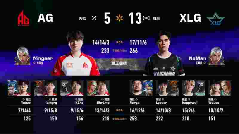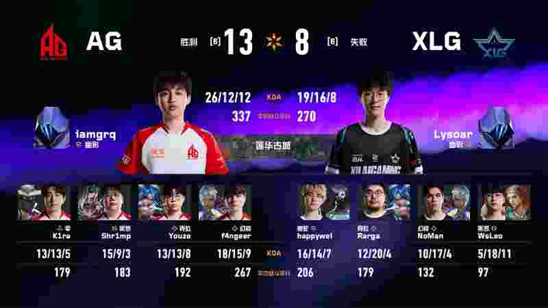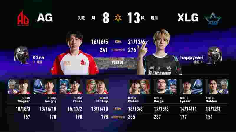happywei接管残局再砍双杀,XLG拿到下半场第二分。但最终AG仍以13-8赢下图一。