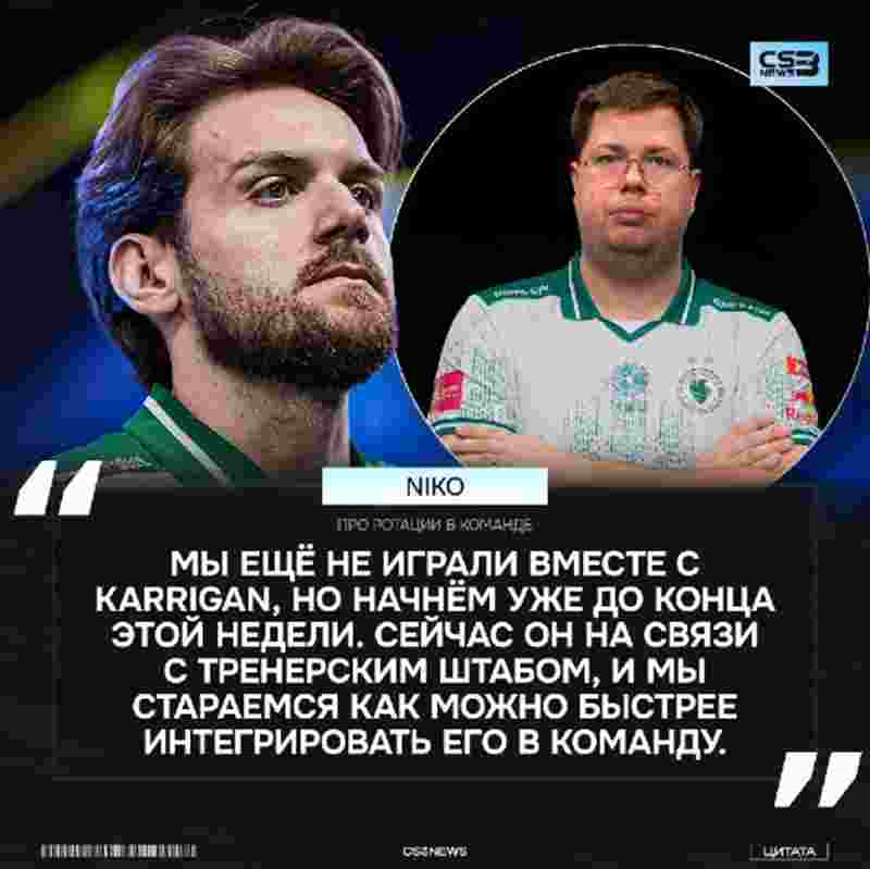 “我们还没和karrigan一起打过比赛,但这周内就会开始合练。目前他已经和教练组对接上了,我们正尽全力让他尽快融入队伍。