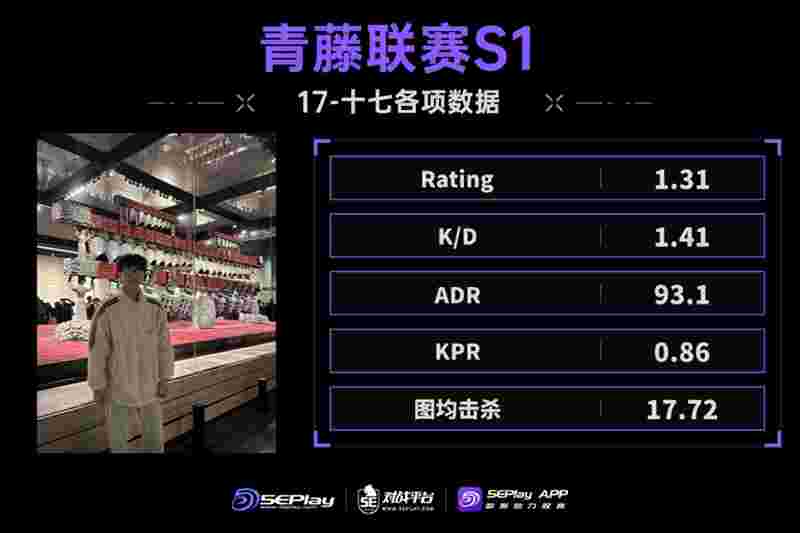 当决赛第三次遇见西游电竞,在K9图一惜败的情况下,危难时刻唯有责任。作为自由人的17-十七在图二Dust2 T方拿起AWP,以进攻狙多次拿下首杀打开局面,但和ropz不同的是,17-十七成功带队拿下了冠军。同时,17-十七K/D位列第一,在图均击杀、图均死亡、助攻、ADR、KAST、KPR、DPR、APR八项数据中均位列前五,是十分全能的选手。