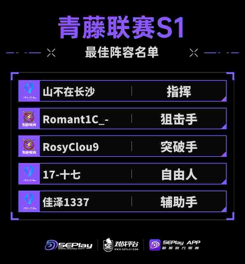 青藤联赛S1最佳阵容名单: