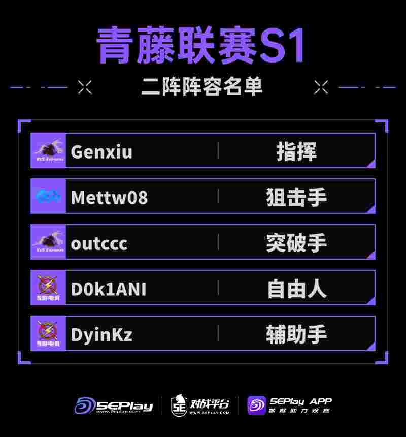 青藤联赛S1二阵阵容名单: