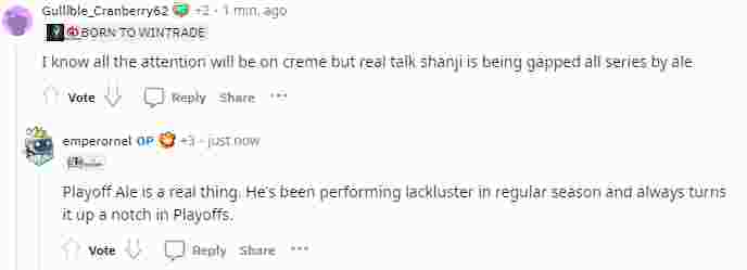 “我知道所有的注意力都在CREME身上,但是说真的SHANJI这个系列赛被ALE完爆了。”