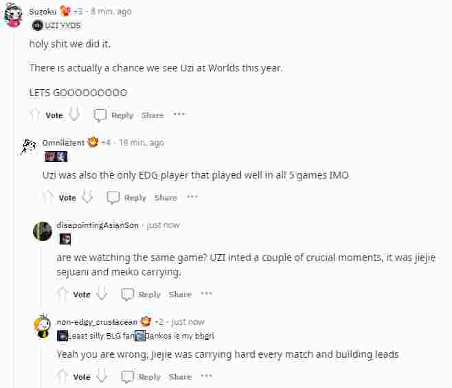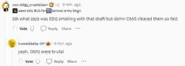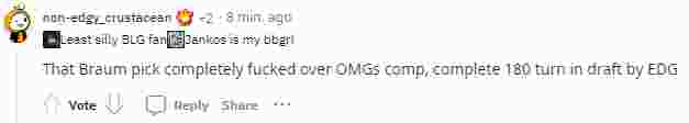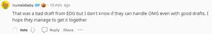 “EDG的bp有点烂,但就算bp得好,我也不知道EDG能不能打得过OMG。希望他们能团结起来。”