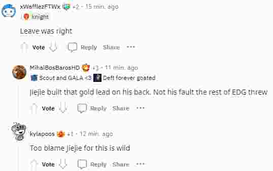 “JIEJIE靠一己之力帮助队伍建立了经济领先,这把不是他的错,EDG剩下的人送了。”