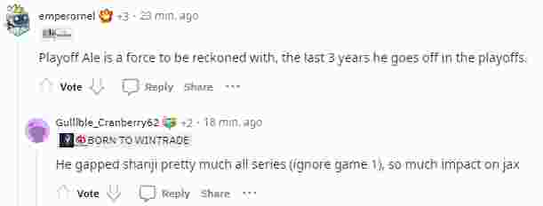 “他在这个系列赛对位把SHANJI打出了巨大的差距(除了第一场),他的贾克斯真的声音很大。”
