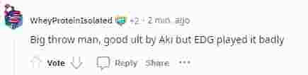 “漂亮的翻盘,AKI的大招放得太好了,但同时EDG打得很臭。”