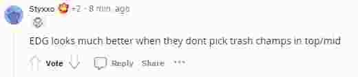 “当中上没有选到垃圾英雄的时候,EDG的表现看上去好多了。”
