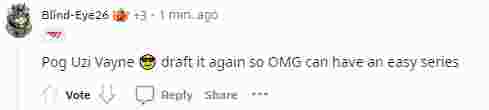 “再给UZI选一把VN吧,这样OMG就能轻松拿下这个系列赛了。”