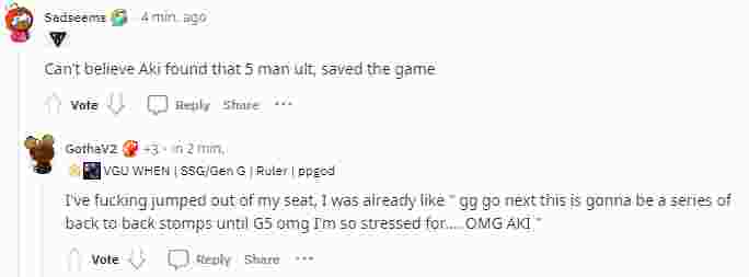 “不敢相信AKI那波大招找到了对面5个人,他拯救了这场比赛。”