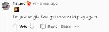 “我只是很高兴我们能看到UZI又在打比赛了。”