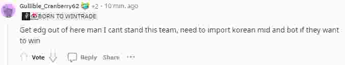 “让EDG赶紧走,我受不了这支队伍了。他们想赢得赶紧去找个韩媛中单和AD。”