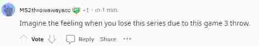 “想象一下当你因为自己亲手把第三场比赛送了,所以最后输掉这个系列赛时的感觉。”