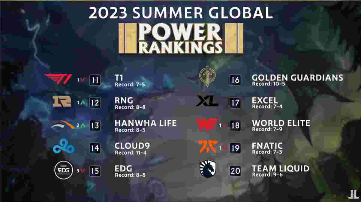 值得一提的是T1跌至11名,EDG跌至15名。T1因为Faker的缺阵,明显的感觉得到队伍的战斗力跌了一个档次,EDG则是夏季赛状态不是很好。其余的战队都是我们熟知的,比如MSI三冠王RNG,北美之光C9,北美豪门TL(液体),欧洲豪门FNC等!