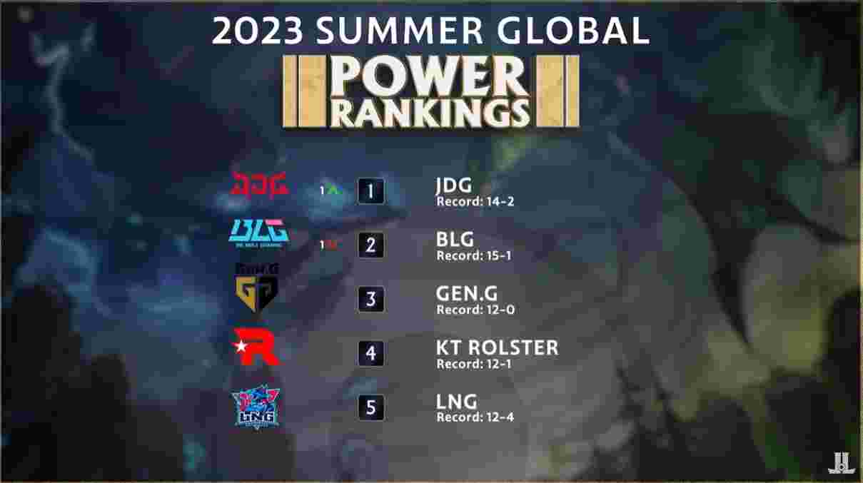 TOP1~5:JDG、BLG、GEN、KT、LNG
