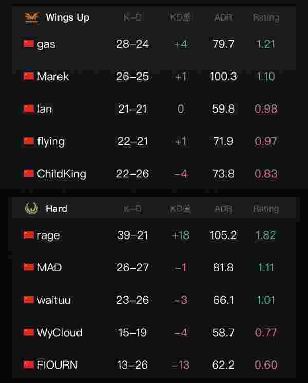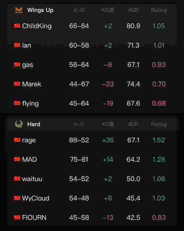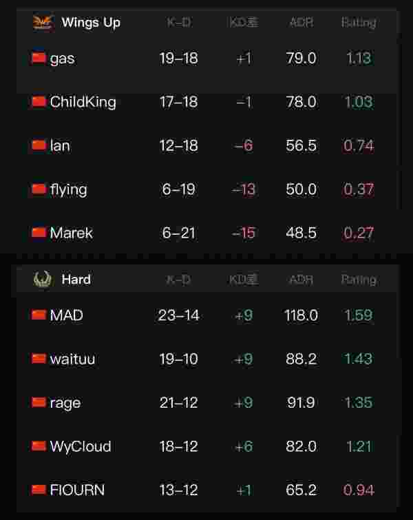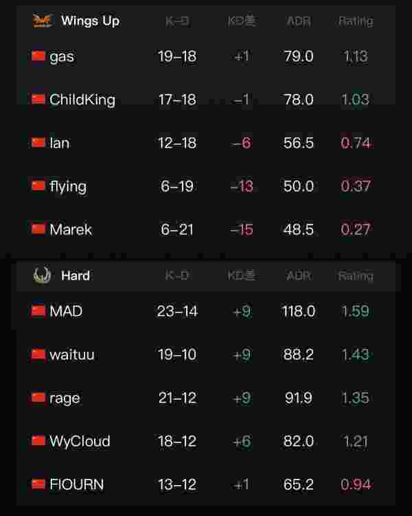 来到加时赛仿佛是在看选手的高光时刻,先是lan的大狙三杀,紧接着,又是marek的单人5杀ACE,最后是gas的4杀结尾,WU在上半场取得了3-0的比分领先,下半场,还是rage的大狙完成了破点,但是,他没能成为Hard的救世主,最后一分,拿着大狙的他1v4的残局没能再次创造奇迹,双拳难敌四手,虽已是单局39杀终是无力回天,最终,第一局Hard16-19告负。