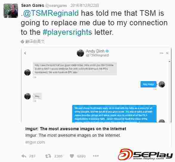 接下来,就是大家都非常关心的seang@res被TSM踢出的消息,引用seang@res和TSM管理人Reginald的对话,就是seang@res因为没有和战队管理层沟通就在那封公开信上签名,此举会导致对TSM战队的声誉有不利影响,刚刚加入新队的seang@res成为这个事件的炮灰。这个事件后甚至有传言,PEA合伙人(即各成员战队的老板)甚至要求签署过那封公开信的相关选手需要录音表明自己并没有“阅读”和“签署”过那封公开信,事件进入白热化。