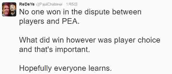 这次PEA的闹剧最终以PEA的惨败告终,PEA希望成立自己的CSGO联赛,垄断北美CSGO市场以获取更大利益的希望宣告破裂。整个事件看上去似乎和多年前发生在国内的某个事件有些相似,但不同的是这次PEA事件最终的胜利者是选手们,是选手们自身的权益得到了保障,而不是某些利益集团。