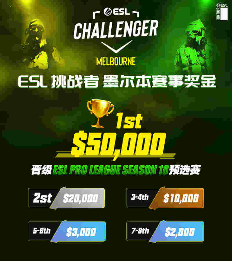 ESL 挑战者 墨尔本 2023的比赛将在4月28日至30日全面开启,RA、GRAYHOUND等八支队伍将会齐聚墨尔本,最终的冠军在领走50,000美元奖金的同时,也会成功获得EPL S18的入场券。5EPlay将以ESL 挑战者 墨尔本 2023中国区合作伙伴身份,为大家带来精彩的比赛直转播与内容制作,期待为广大粉丝们带来更加优质的观赛体验!