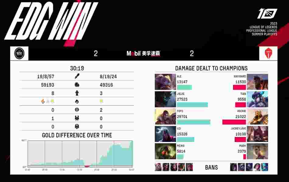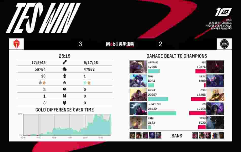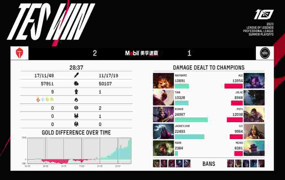 北京时间7月24日,今日LPL季后赛TES 3:2战胜EDG,挺进下一轮,下面是本场比赛的赛事播报。