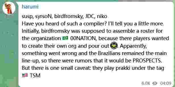 日前独联体爆料人harumi在个人Telegram上分享了有关TSM战队阵容的最新进展。
