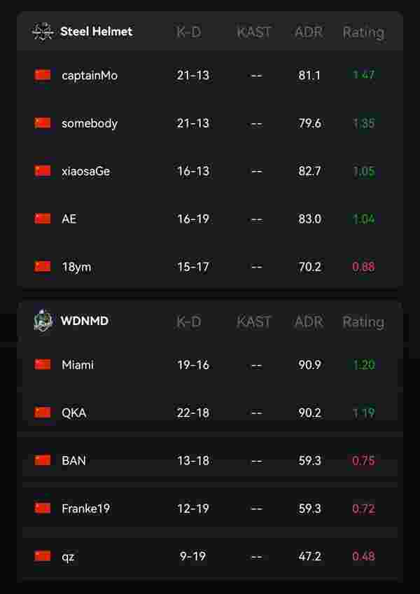 来到下半场,钢盔赢下手枪局后统治了比赛,captainMo和小鬼在中路予取予求,WDNMD的进攻难以形成有效的突破,尤其是B坡和中路对抗上几乎打不开突破口,钢盔连拿九分,16-8结束了比赛。