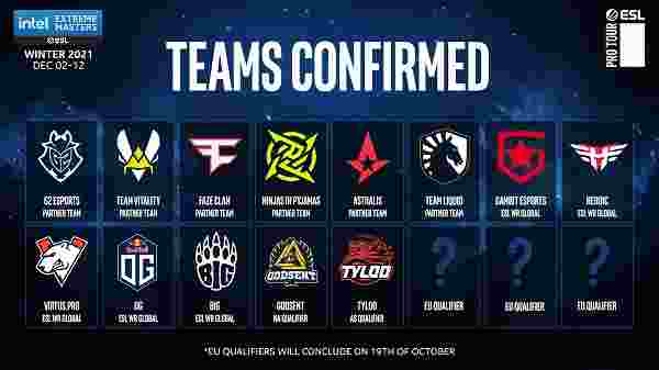目前IEM冬季赛的名单还剩下三支队伍尚未确定,这将通过10月18日至19日的欧洲封闭预选赛决定。