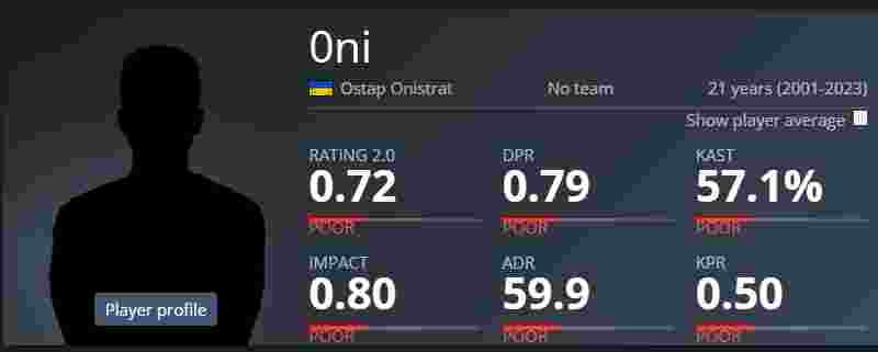 这位选手名叫0ni,在职业圈中名不见经传,HLTV上鲜有他的痕迹,其比赛记录停留在2021年。