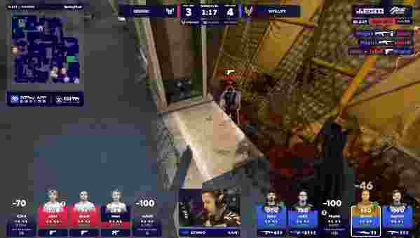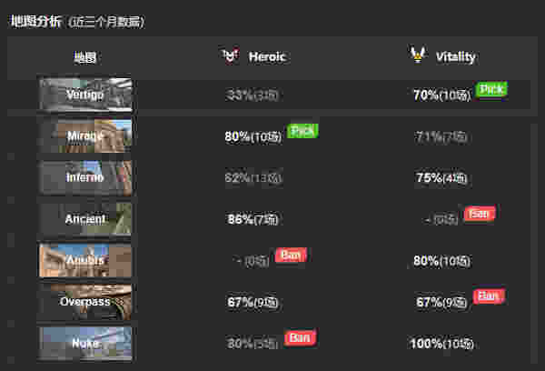 图一是Vitality选择的Vertigo,先作进攻方的Heroic依靠补枪顺利一波进攻A区,赢下手枪局,稳稳得到前三分。第四局,一波进攻A区的Heroic没能清空A小,被apEX完成一波四杀,Vitality拿到第一分,并连续得分。