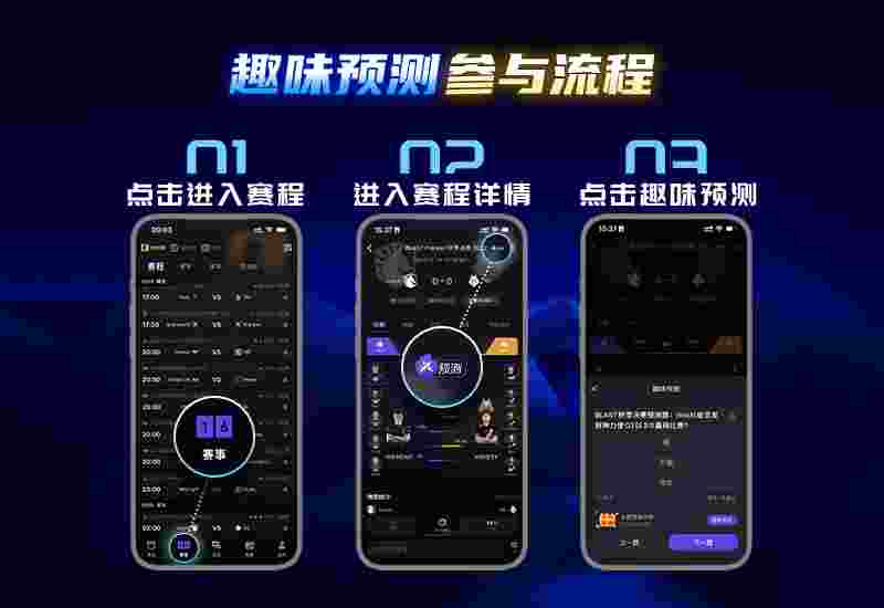 大家在比赛日当天进入BLAST春季小组赛赛事页面,选择你想竞猜的比赛进入对阵详情,点击【预测】按钮(老版本App为页面右上角、新版本App为页面中央)即可参与。