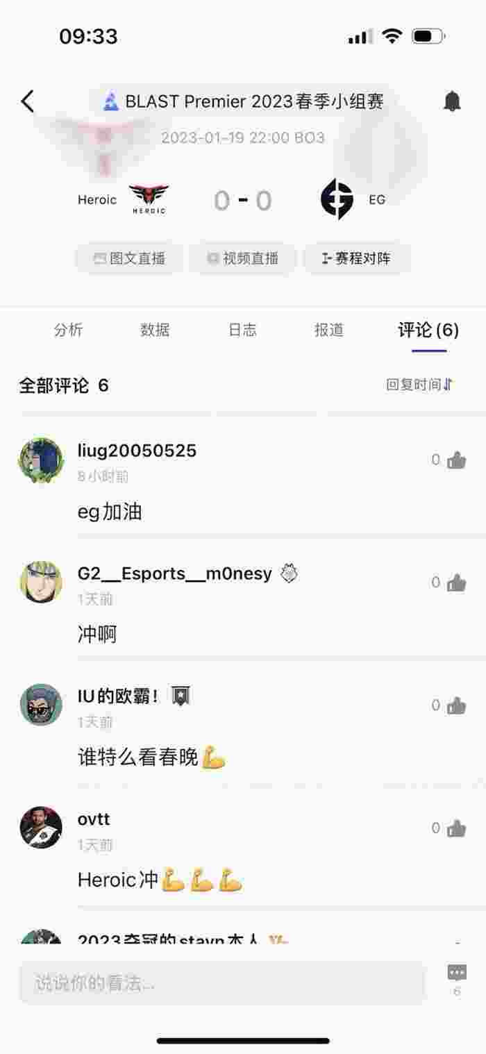 2. 在相关任意BLAST春季小组赛比赛的评论区中发表你对本场比赛的看法。