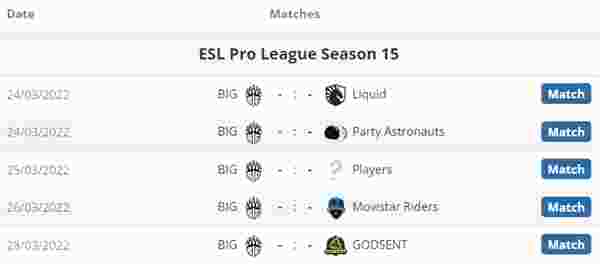 BIG对阵表: