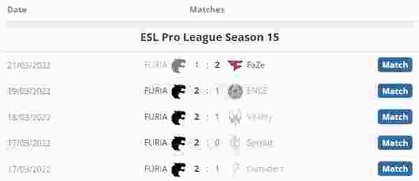 FURIA战绩表: