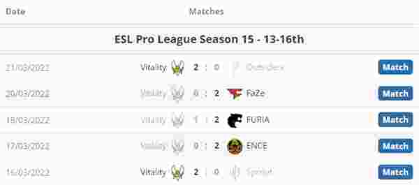 Vitality战绩表: