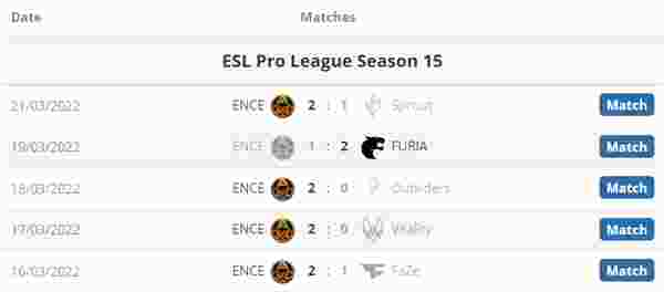 ENCE战绩表: