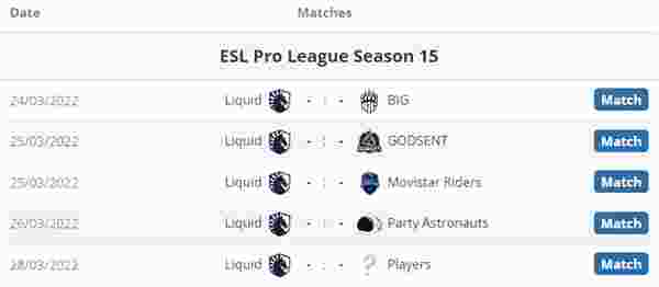 Liquid对阵表: